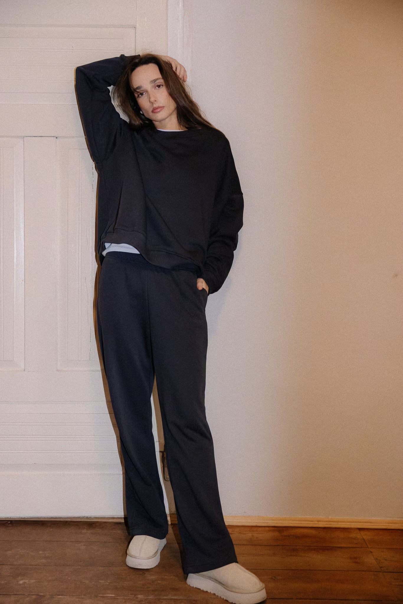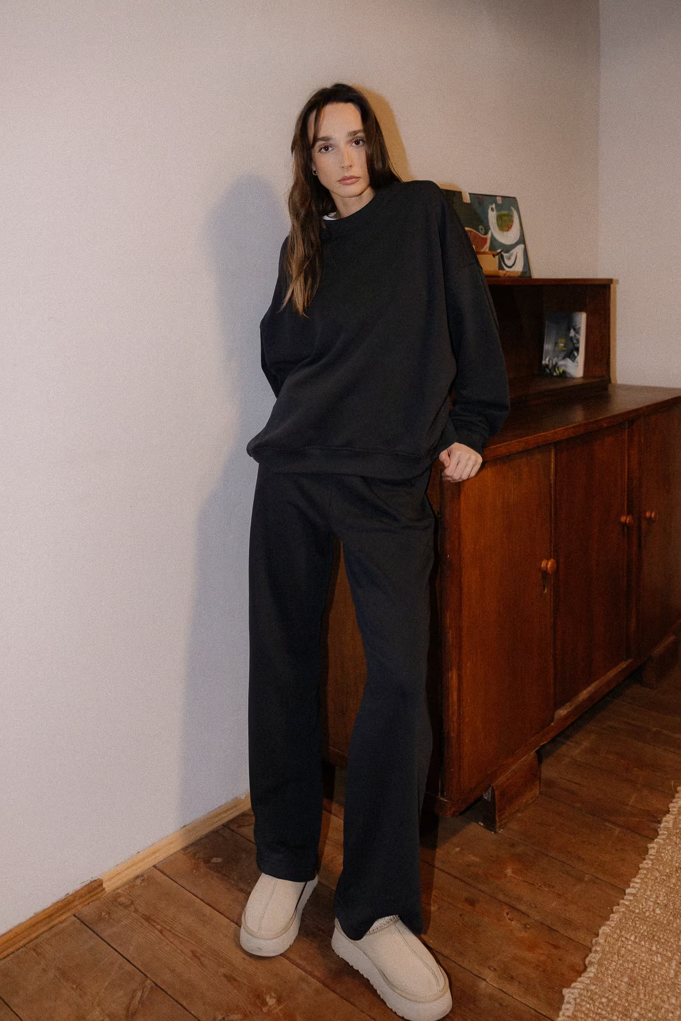 The sweatshirt is made from high-quality loopback cotton of medium weight, making it ideal for year-round wear. The certified fabric, produced in Poland, stands out for its durability and resilience. It is composed of premium-grade cotton blended with polyester, which provides stability, longevity, and wearing comfort. The material does not pill, stretch out, fade, or lose its original shape.