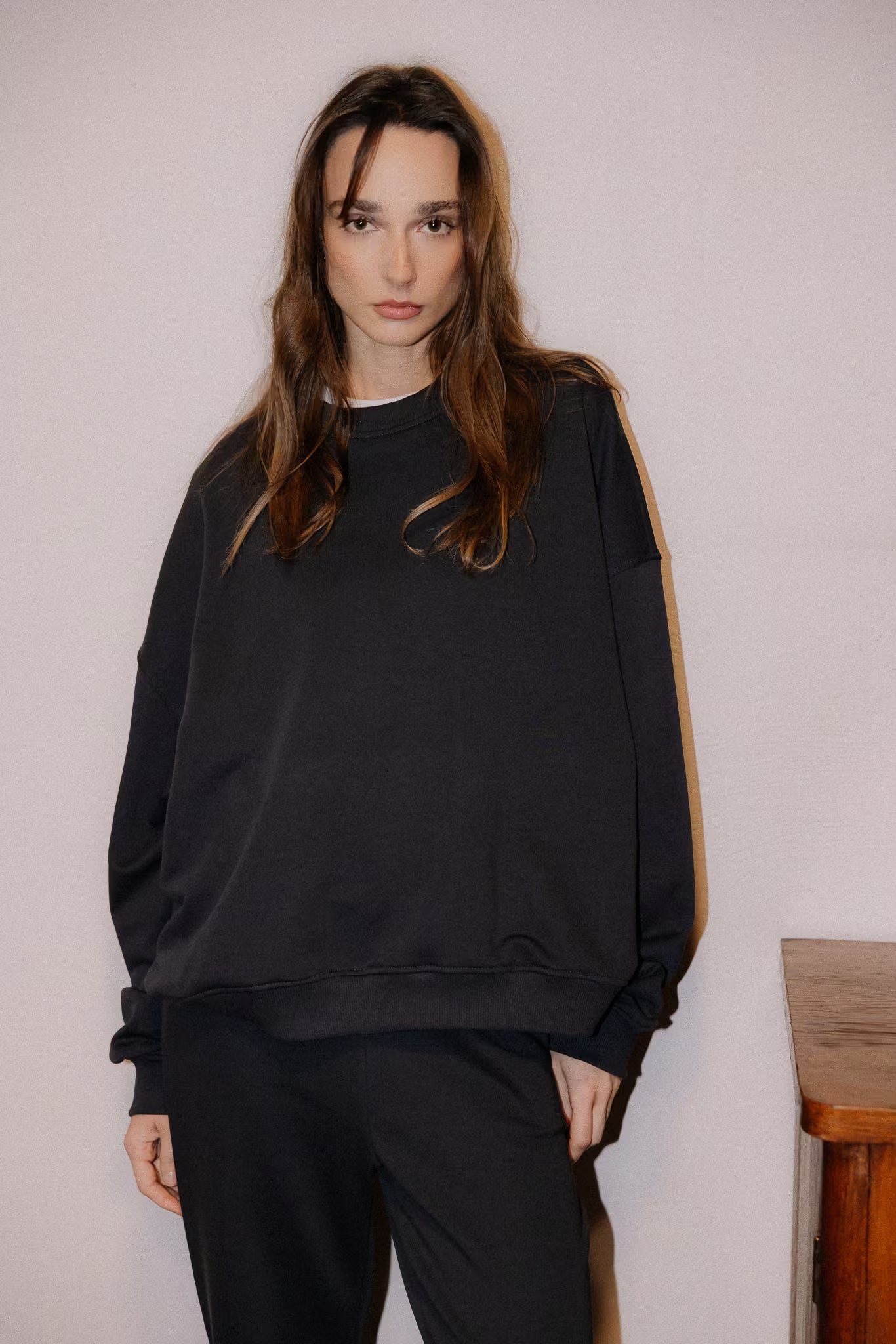 Oversized fit. Standard length. Crewneck. Long sleeves.