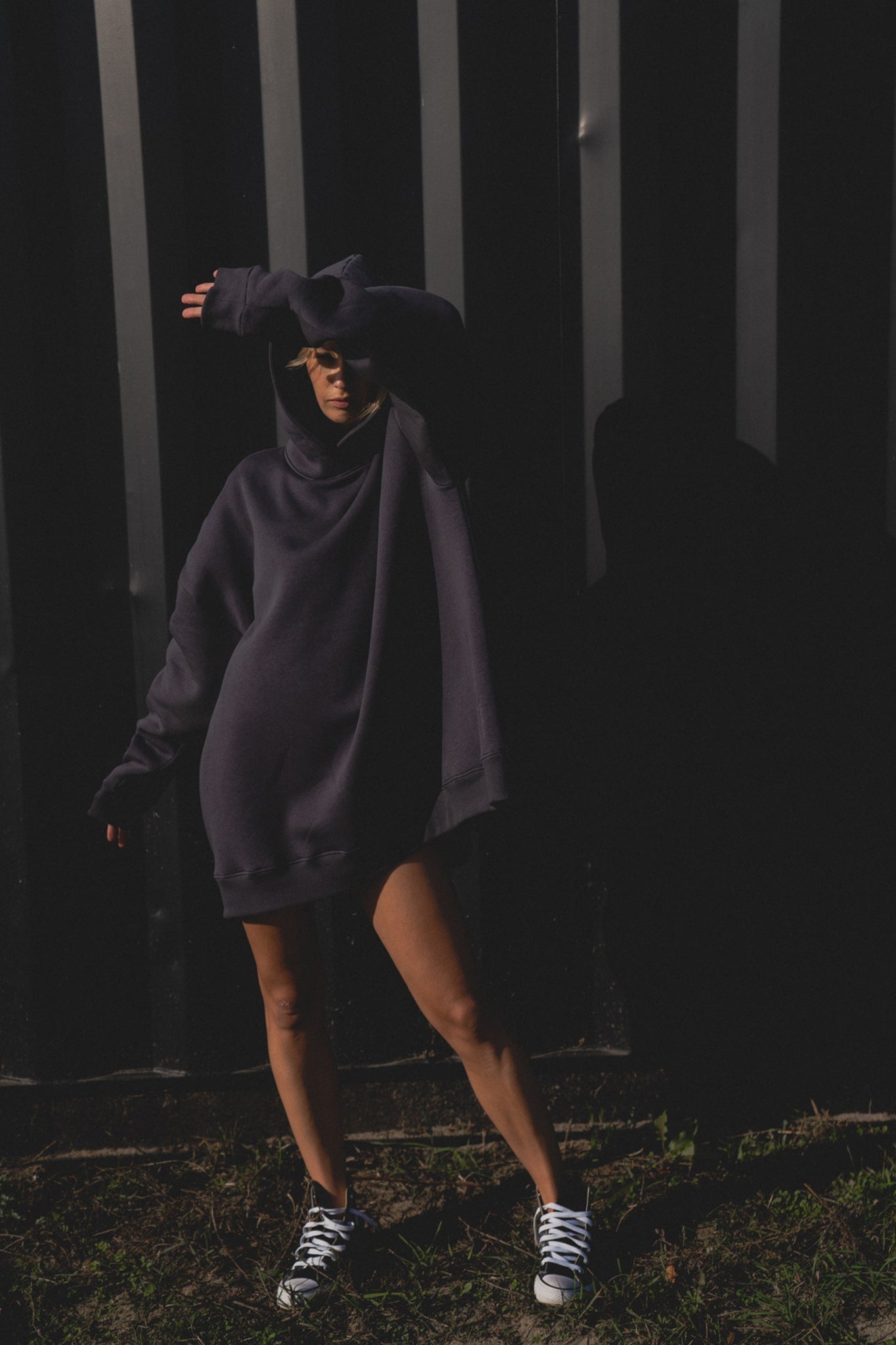 Oversized fit. Roomy hood. Long sleeves. Ribbed cuffs and hem.