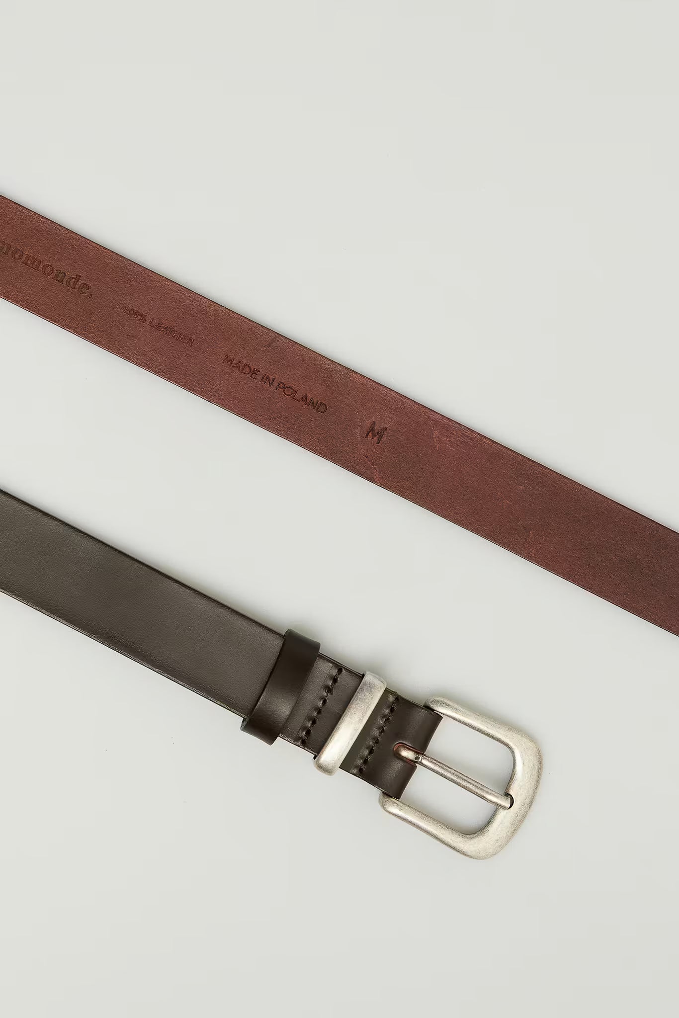 Skórzany pasek z metalową klamrą to solidny, uniwersalny dodatek, który zostaje w garderobie na lata. Wykonany z wysokiej jakości skóry naturalnej, garbowanej roślinnie, z czasem nabiera jeszcze więcej charakteru i dobrze znosi codzienne użytkowanie. To pasek, który kupujesz raz i nosisz przez długi czas. Metalowe wykończenie i klamra w kolorze postarzanego srebra lub mosiądzu nadają mu ponadczasowego charakteru. Subtelne, tłoczone logo momonde oraz dodatkowa skórzana szlufka dopełniają całości. Prosta forma sprawia, że dobrze pasuje zarówno do jeansów, jak i bardziej klasycznych spodni.