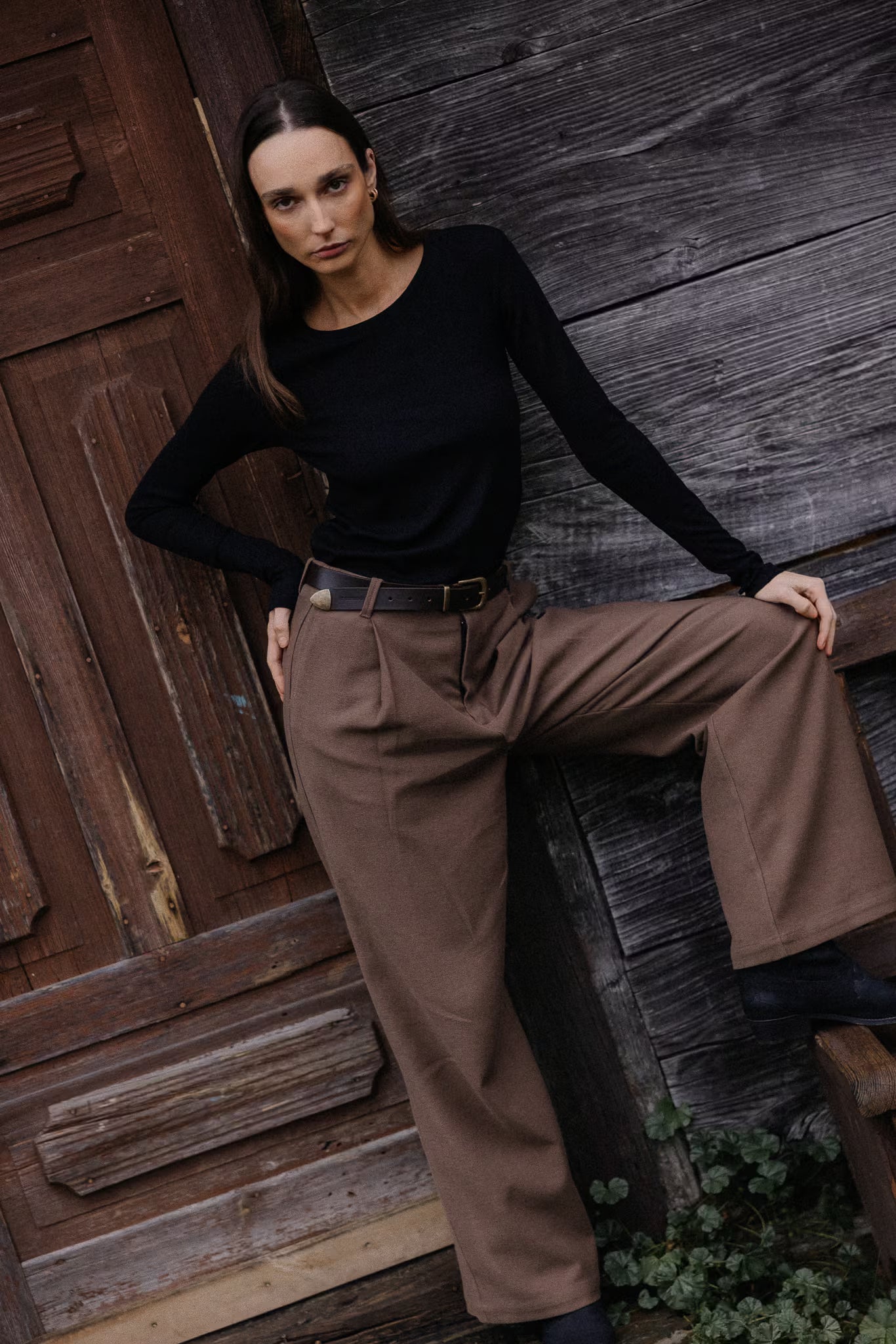 Longsleeve Mari to dopasowany model o prostej, czystej formie, który stanowi funkcjonalną bazę codziennej garderoby. Wykonany z prążkowanego lyocellu z dodatkiem elastanu, dobrze układa się na sylwetce i zapewnia komfort noszenia przez cały dzień. Elastyczna dzianina pracuje z ciałem, nie krępując ruchów i zachowując lekkość w noszeniu.
