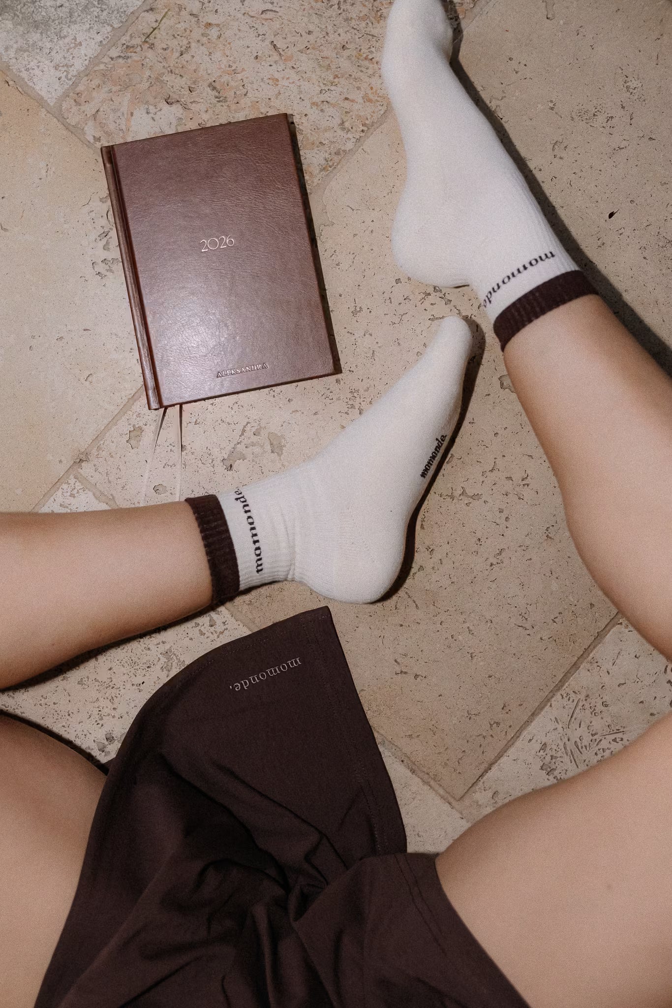 Miękka bawełniana dzianina. Prążkowany ściągacz z logo. Ocieplane podbicie stopy.
