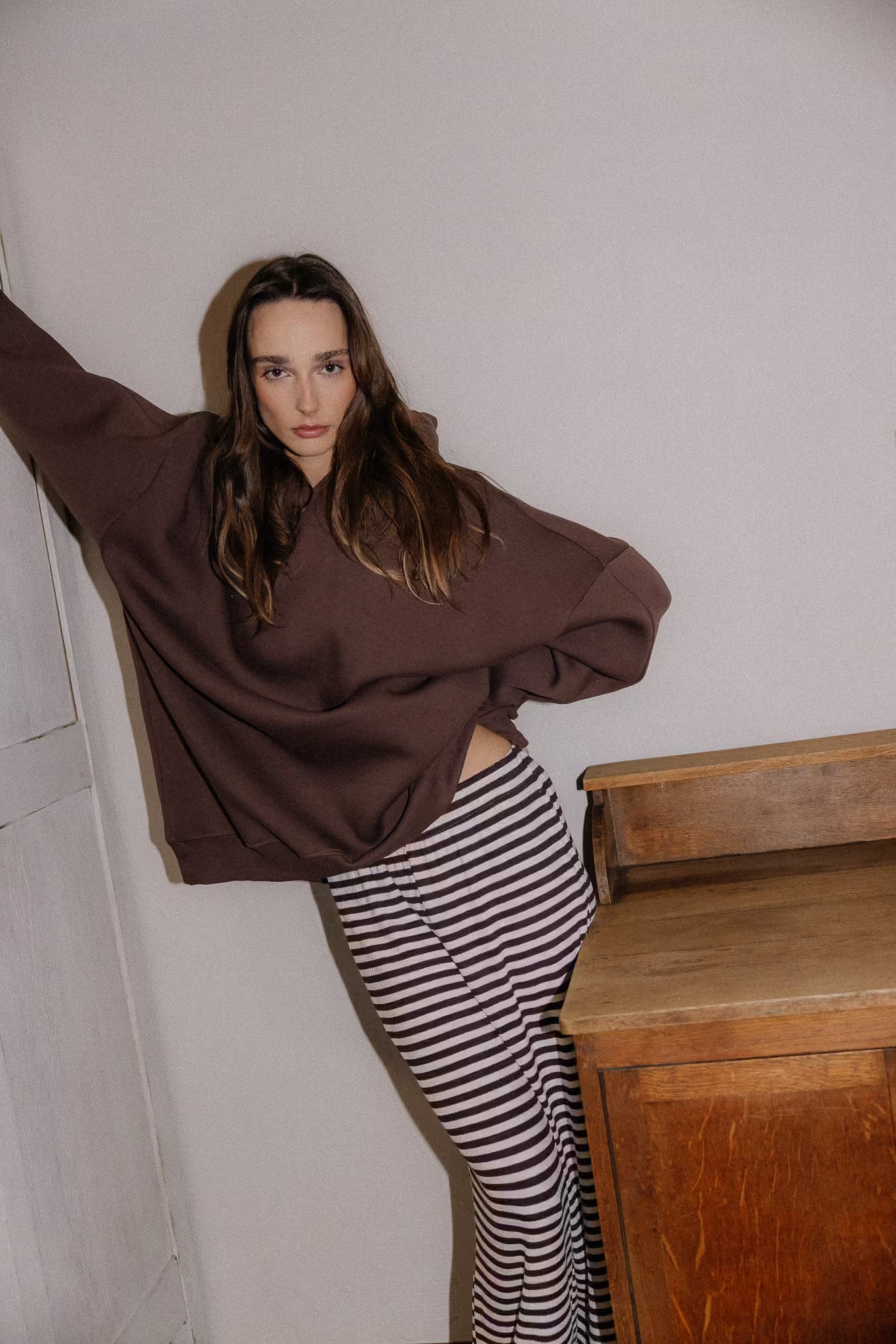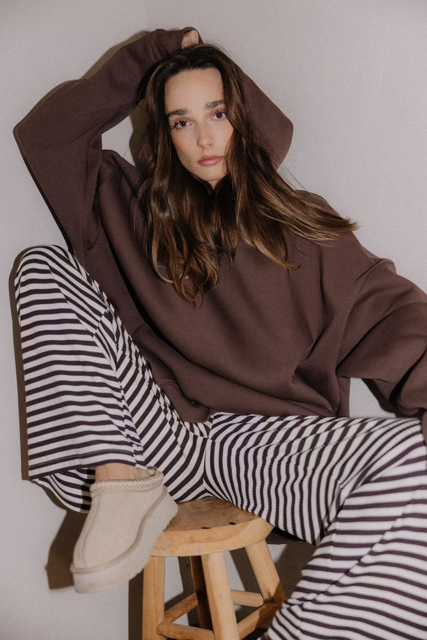 Spodnie Leni to swobodny, dopracowany model stworzony z myślą o codziennym komforcie. Luźny krój, miękka prążkowana dzianina oraz elastyczna guma w pasie sprawiają, że spodnie idealnie układają się na sylwetce i nie krępują ruchów. Długie nogawki nadają im lekkości i nowoczesnego charakteru, a prosta forma i czyste linie budują ich minimalistyczny wygląd. To model, który naturalnie wpisuje się w wiosenno-letnią garderobę – wygodny, niewymuszony i gotowy na każdy wyjazd, spacer czy dzień w biegu.